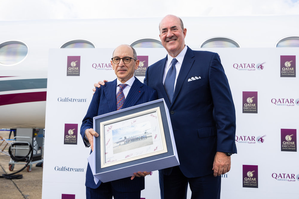 وقال السيد مارك بيرنز، رئيس جلفستريم: “أود التعبير عن امتناننا للثقة المستمرة من قبل القطرية لطائرات رجال الأعمال في جلفستريم ويشرفنا تواجد الناقلة القطرية بوصفها المشغل العالمي الأول لهذه طائرة، في حفل إطلاق طائرة جلفستريم G700. تتمتع هذه الطائرة بأكثر المقصورات رحابةً وابتكار لتقدم للمسافرين تجربة سفر ذات تصنيف خمس نجوم. كما ونتطلع قدماً إلى اعتمادها ودخولها أسطول القطرية لطائرات رجال الأعمال المميز.”