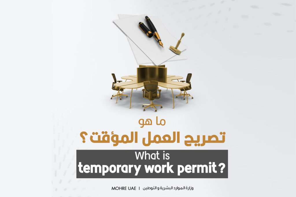 ويسمح تصريح العمل المؤقت للشركات في الإمارات العربية المتحدة بتوظيف عامل لإكمال وظيفة خلال فترة محددة، وتقدم وزارة الموارد البشرية والتوطين خدمة إصدار تصريح عمل مؤقت، والتوظيف لفترة محددة للمنشآت المسجلة لدى الوزارة.